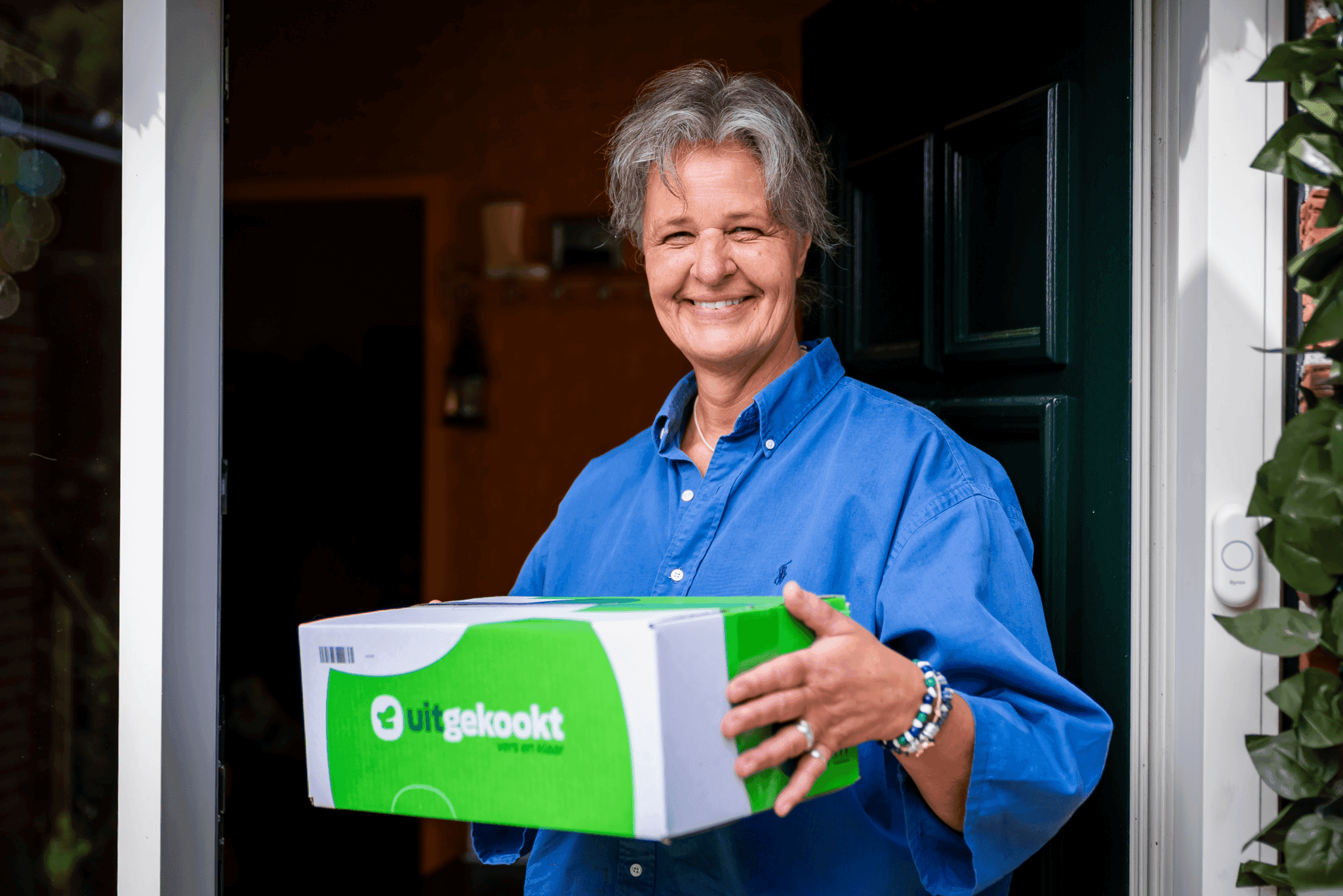 “Omdat koken me te veel energie kost, is Uitgekookt ideaal. De maaltijden zijn heerlijk en gevarieerd, maar vooral de bezorging springt eruit: altijd op tijd, persoonlijk en met een vriendelijk praatje. Het voelt vertrouwd en maakt mijn dag telkens een beetje leuker.”