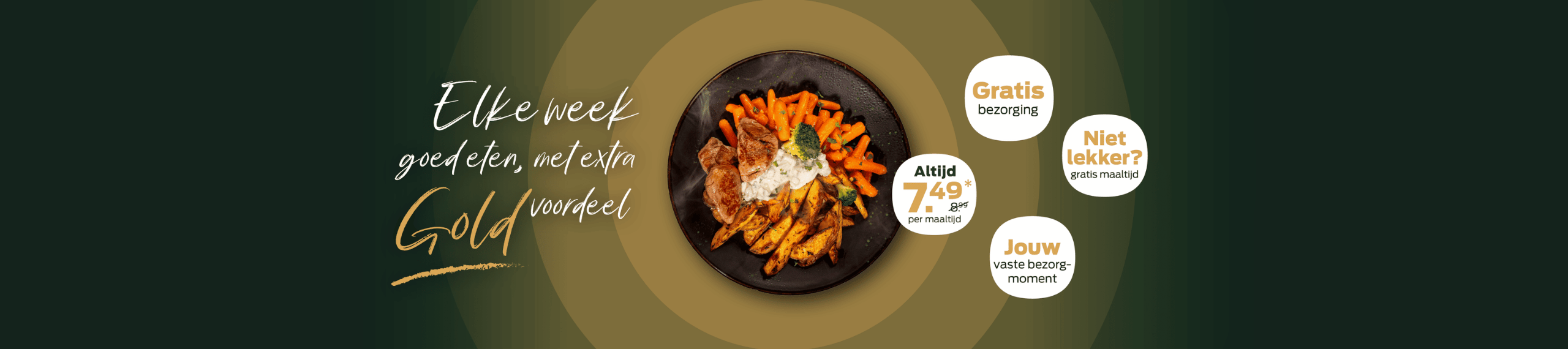 Nieuwe klanten starten automatisch met Gold. Ben je al klant? Je Gold-status wordt geactiveerd zodra je in minimaal 3 van de 4 weken vier maaltijden per week bestelt.