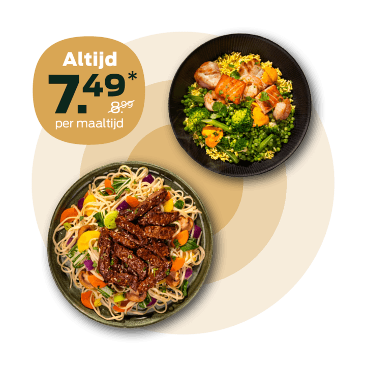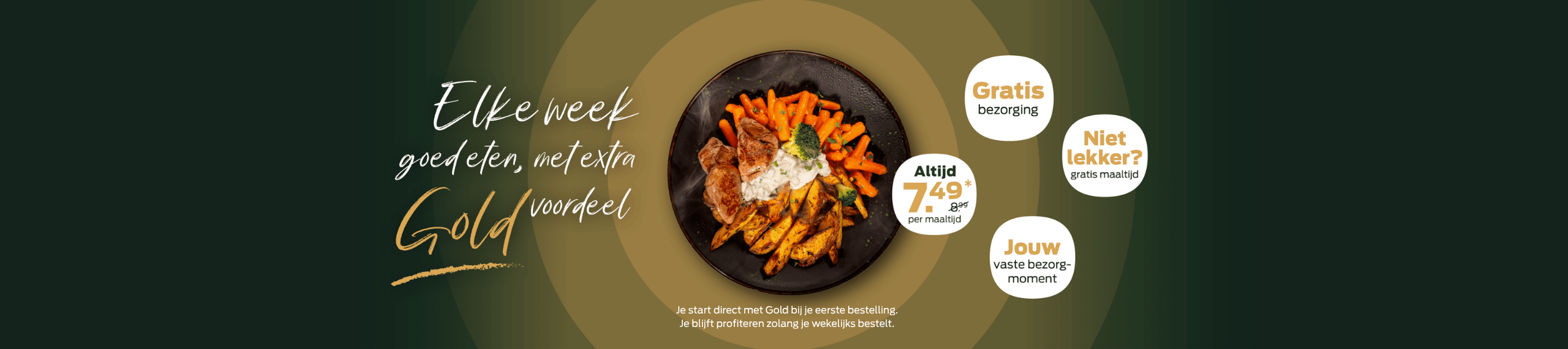 Wanneer je voldoet aan de voorwaarden voor Gold, betaal je altijd een lage prijs van €7,49 per maaltijd*. Zo staat de prijs vast en kun je met een gerust gevoel kiezen voor de maaltijden die jij lekker vindt.