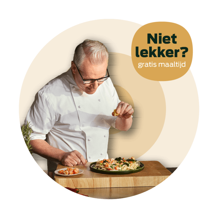Vaste, lage prijs. Gratis bezorging. Jouw eigen vaste bezorgmoment. Niet lekker? Maaltijd cadeau!