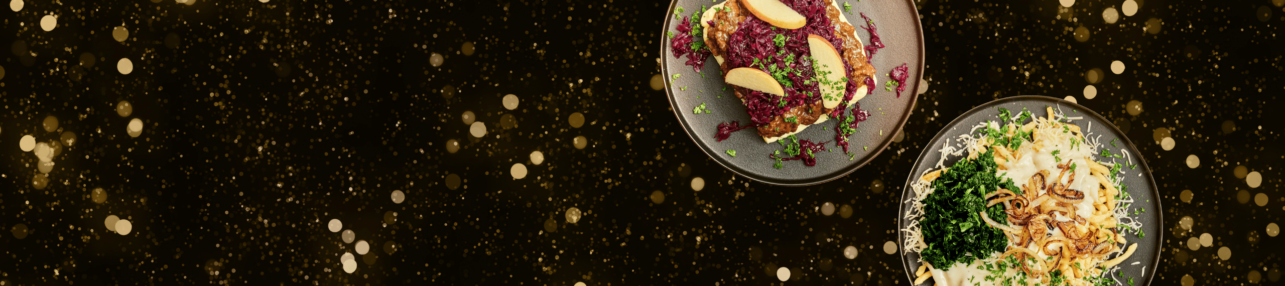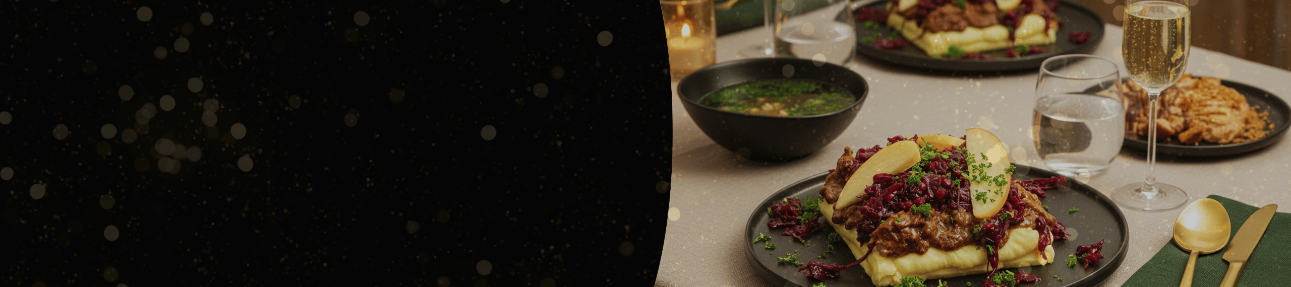 Het nieuwe jaar is (bijna) van start gegaan! Bij Uitgekookt helpen we je graag om het jaar heerlijk en zorgeloos te beginnen. Daarom hebben de chefs van Uitgekookt met liefde een speciaal 3-gangenmenu samengesteld. Je kunt kiezen uit twee heerlijke menu’s: rodekoolschotel met puree en draadjesvlees of Rudolph's käsespätzle. Naast dit hoofdgerecht is elk menu compleet gemaakt met een soepje en dessert. Perfect om zorgeloos te genieten van een smaakvolle start van het jaar!