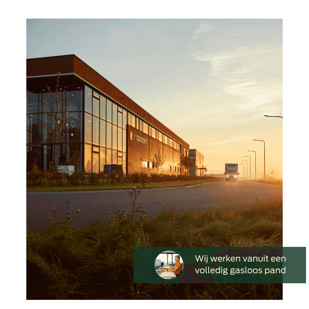 Uitgekookt werkt vanuit een moderne locatie in IJsselmuiden. Volledig gasloos en voorzien van zonnepanelen op het dak. Met oog voor milieu en innovatie zetten wij technologie en slimme oplossingen in om onze impact te minimaliseren. Bij Uitgekookt combineren we moderne faciliteiten met een inspirerende werkomgeving, klaar voor de uitdagingen van vandaag en morgen.