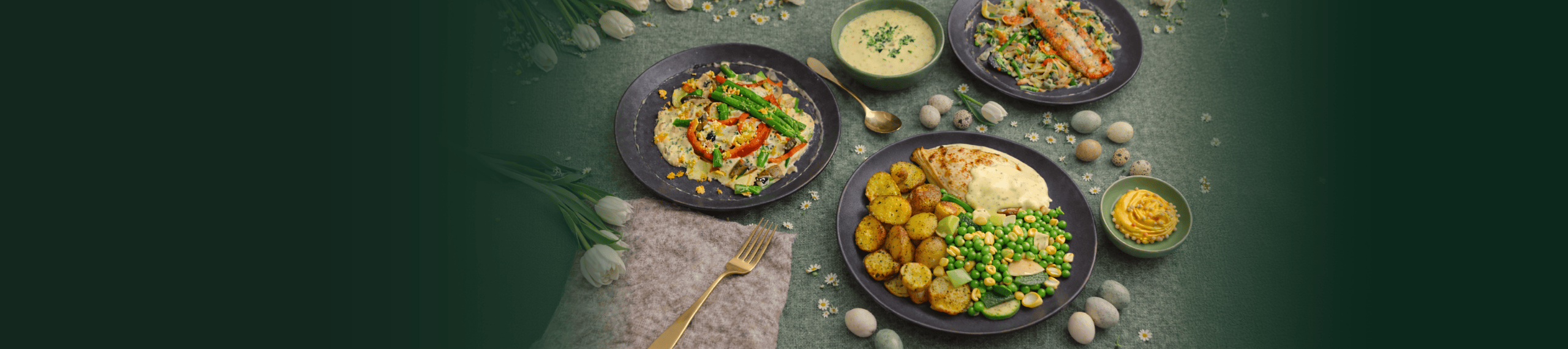 De chefs van Uitgekookt hebben met aandacht drie complete 3-gangenmenu's voor je samengesteld, zodat jij dit jaar niet in de keuken hoeft te staan en kunt genieten van een ontspannen en smaakvol paasdiner.
